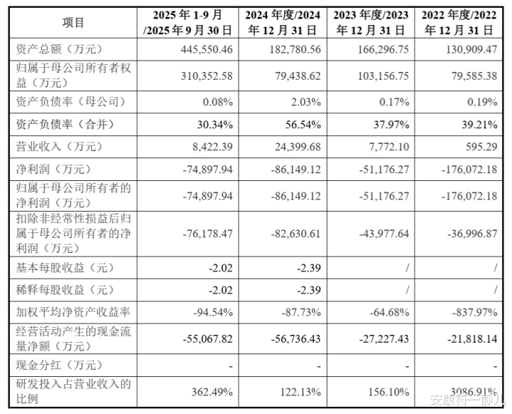 2025年前三季度亏损7.4亿元,研发投入占营收比达360%。